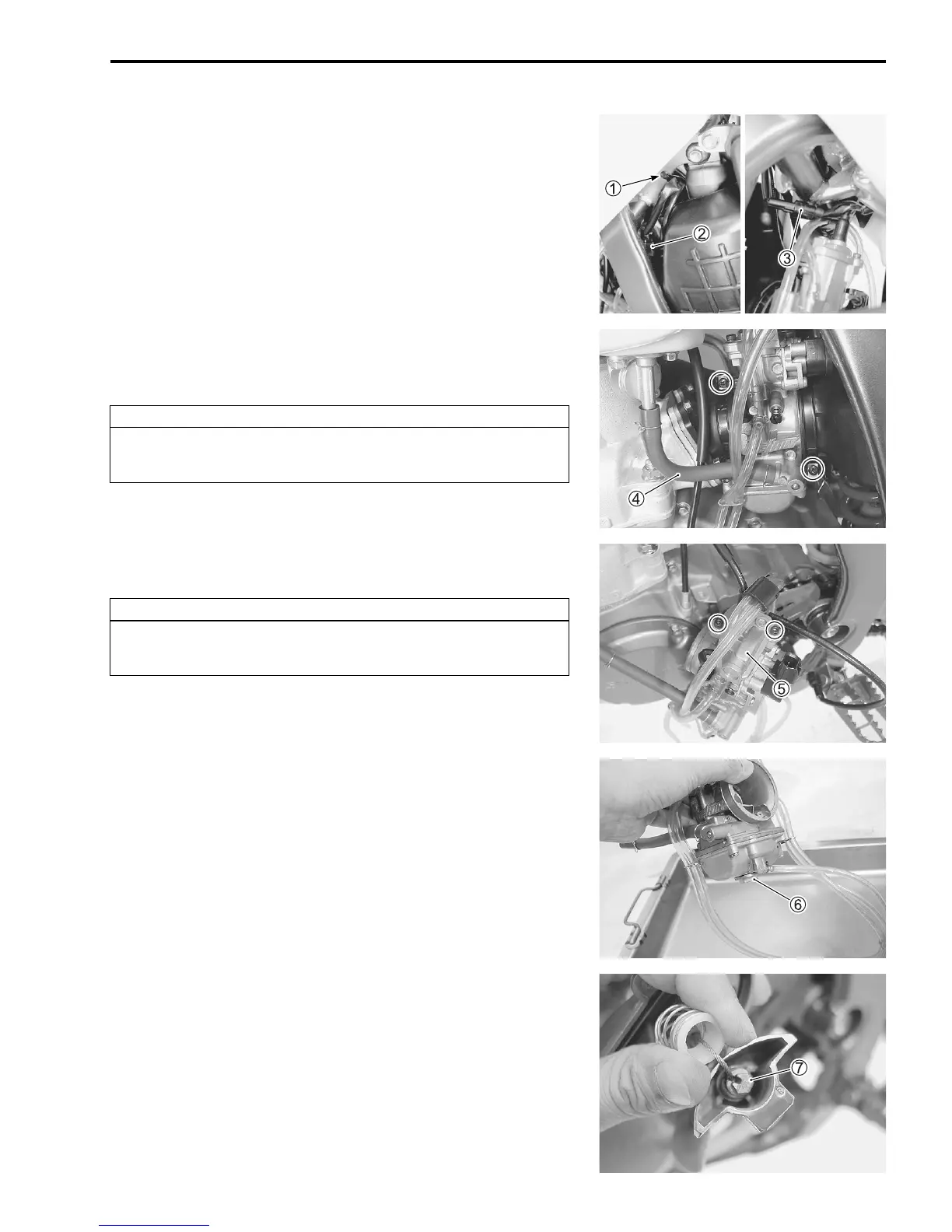 • Remove the carburetor top cap 5 along with the throttle valve