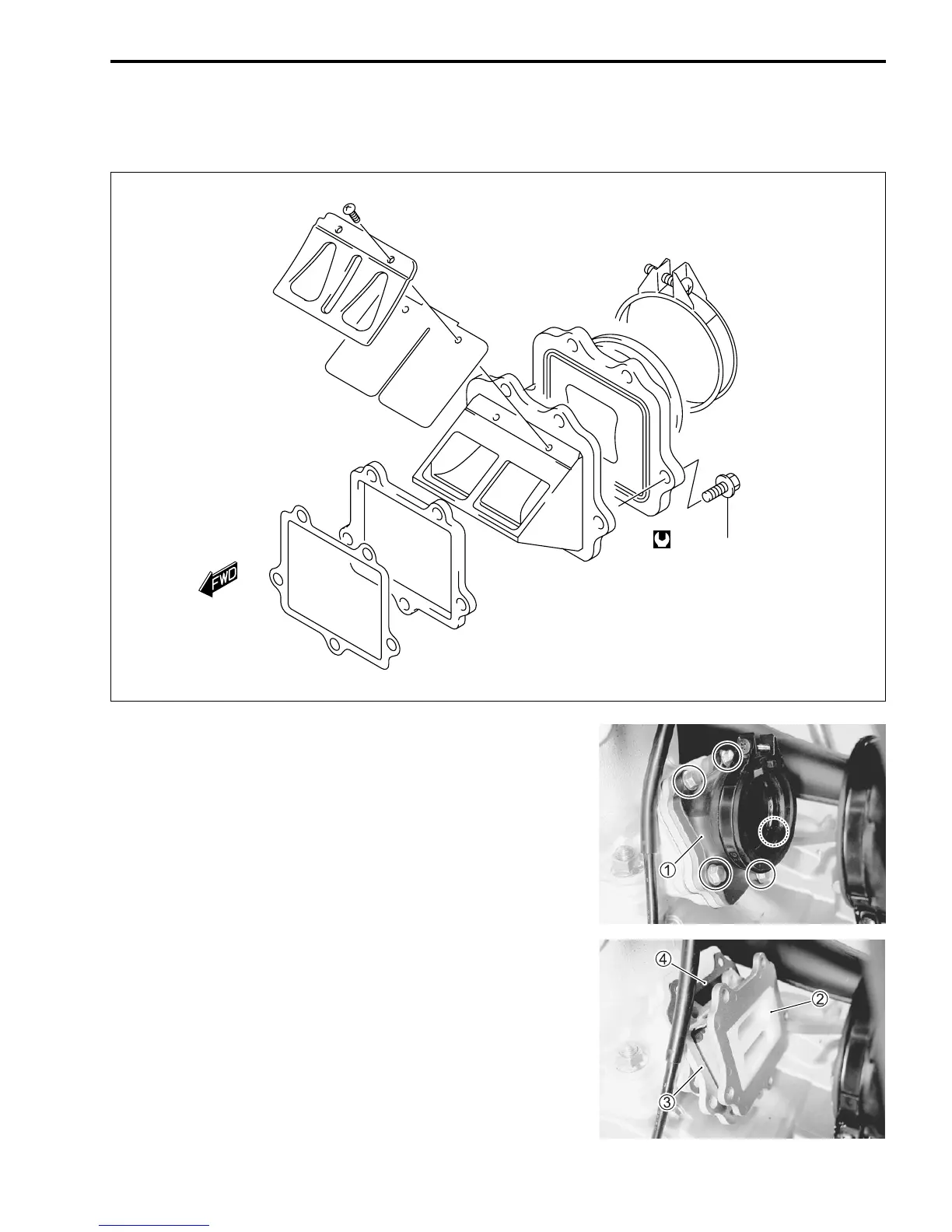 Remove the reed valve 2, spacer 3 and gasket 4.