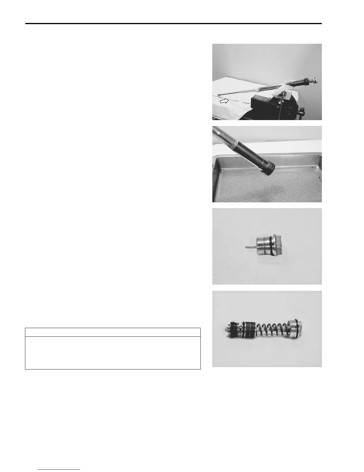 • Drain the fork oil from the damper rod assembly by moving