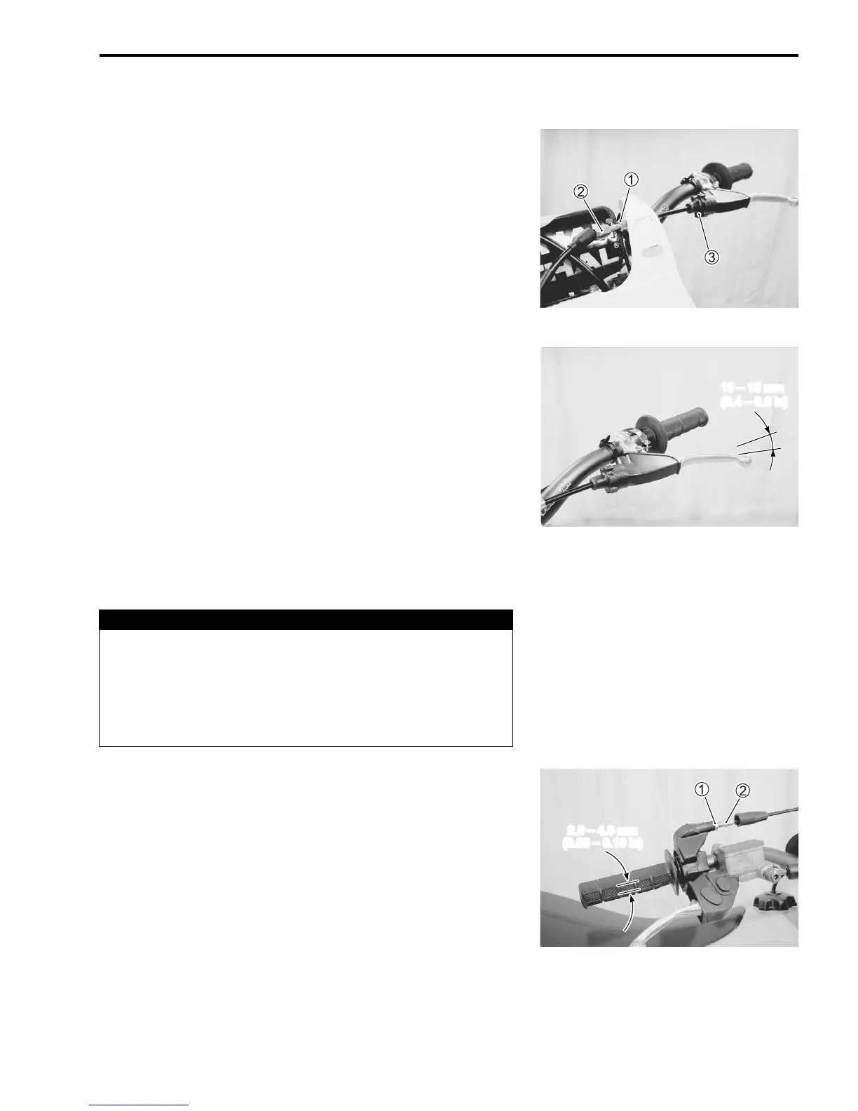 • Turn the adjuster 2 so that the throttle grip obtains 2.0 – 4.0