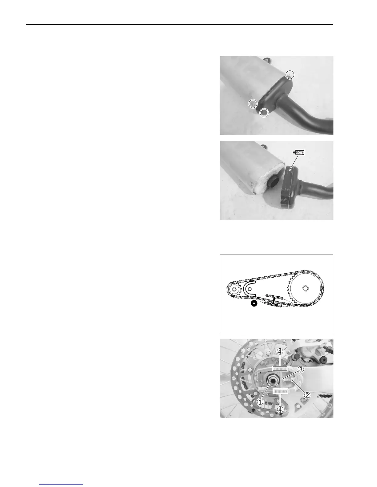• Loosen lock-nut 2 and adjust the drive chain slack to the