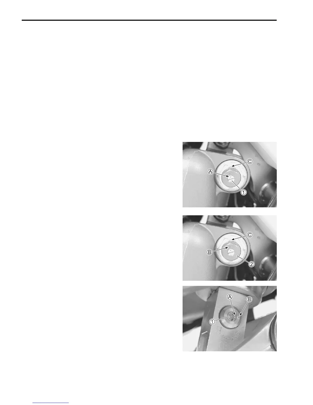 • Turn the adjuster bolt 2 clockwise until it stops (full hard posi-