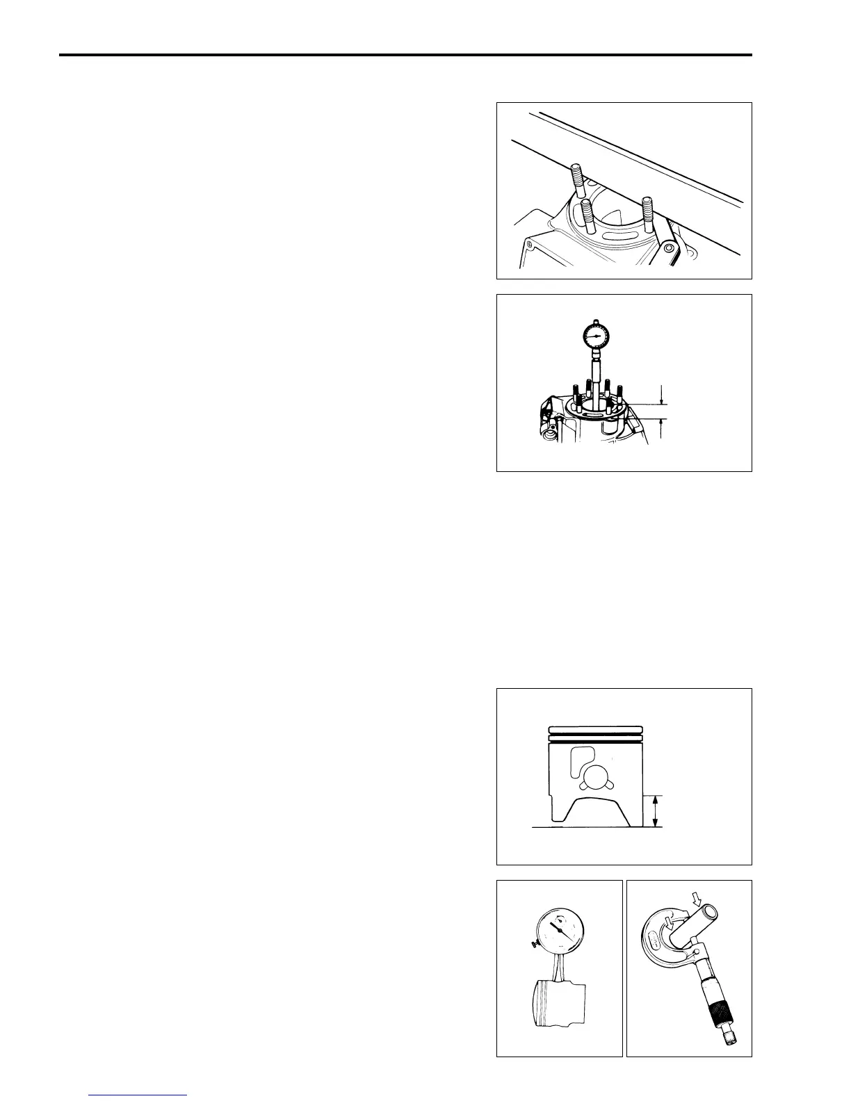 • Measure the cylinder bore for wear with the cylinder gauge at