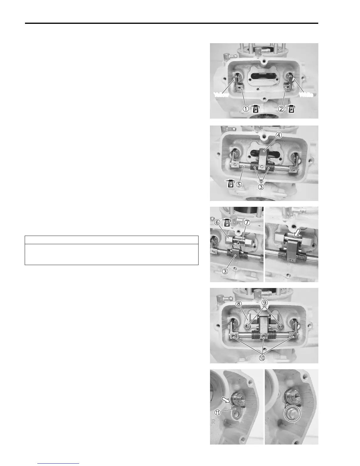 • Insert the exhaust valve shaft 5 through the exhaust valve