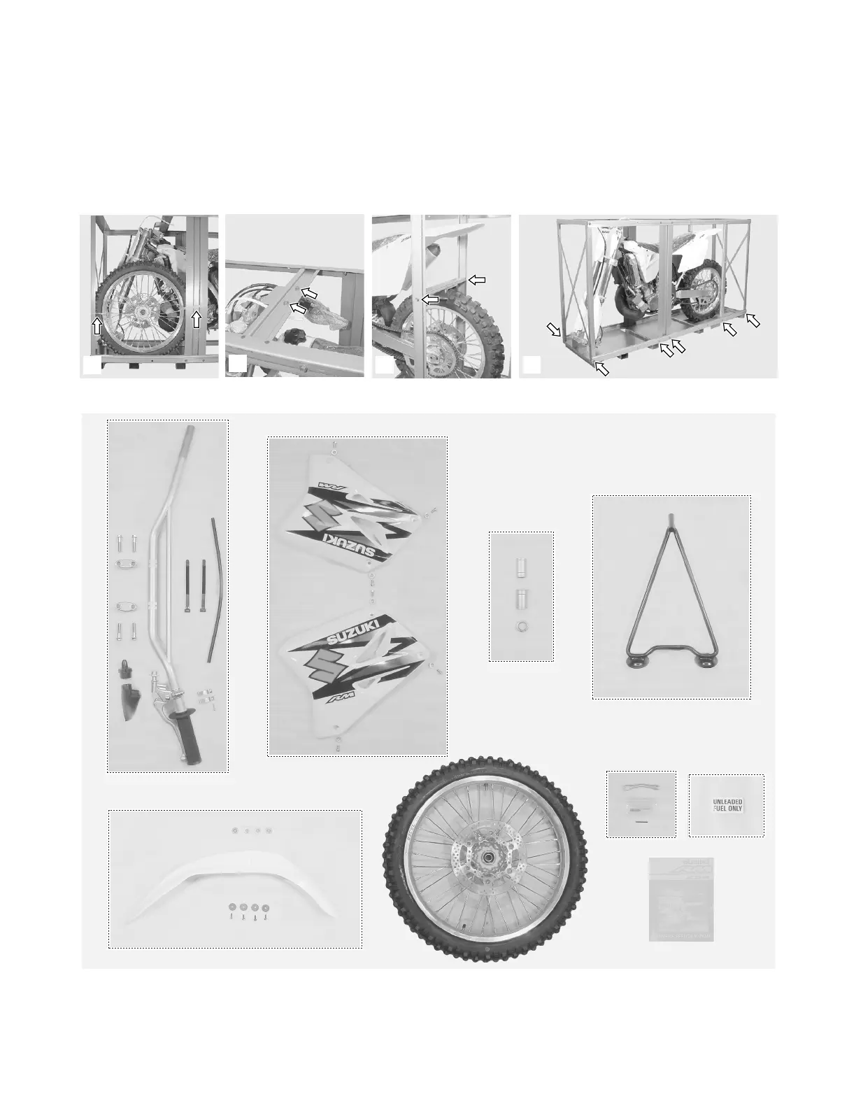 Soigneusement retirer les pièces emballées autour de la moto.