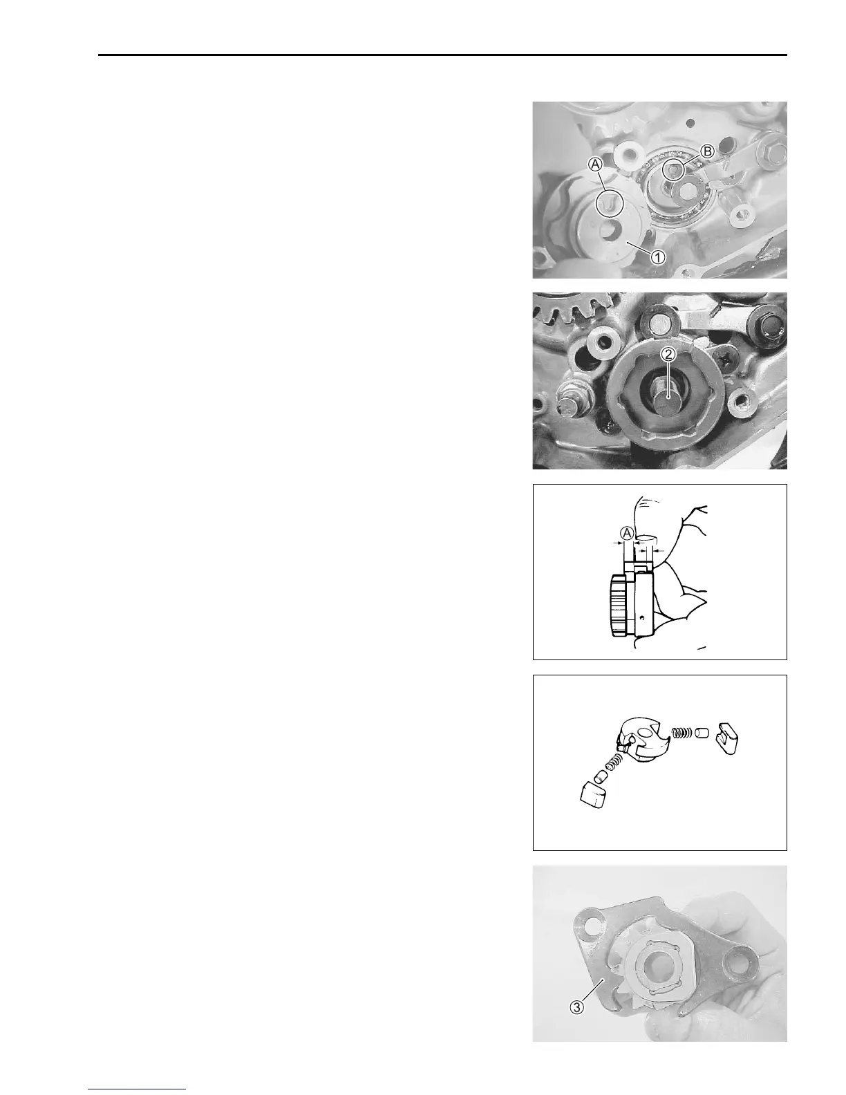 • Install the springs, pins and pawls to the shifter. Wider side A