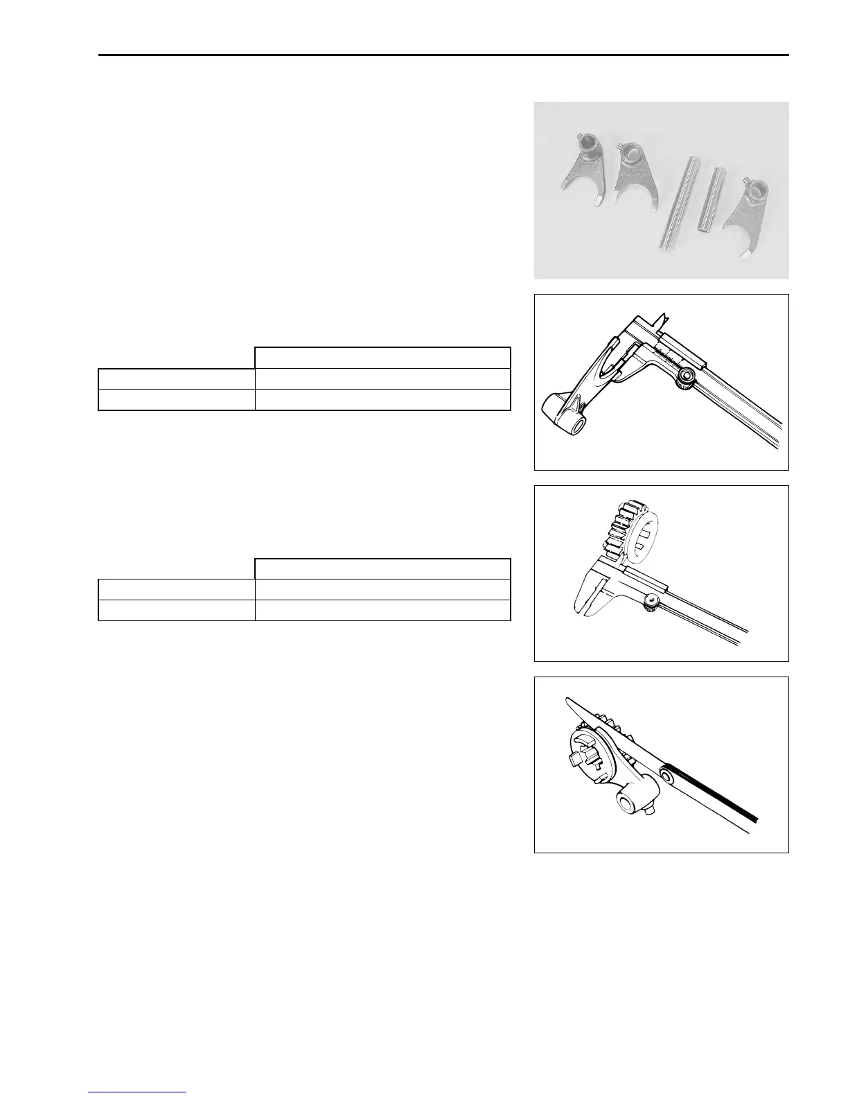 • Measure the gearshift fork thickness with a vernier calipers.