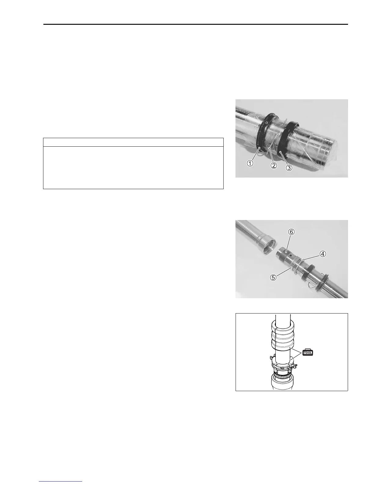 • Install the dust seal 1 , stopper ring 2 and oil seal 3 onto the