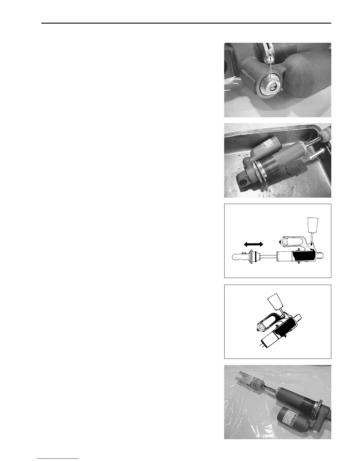 • Tilt and shake the rear shock absorber unit to fill the reservoir