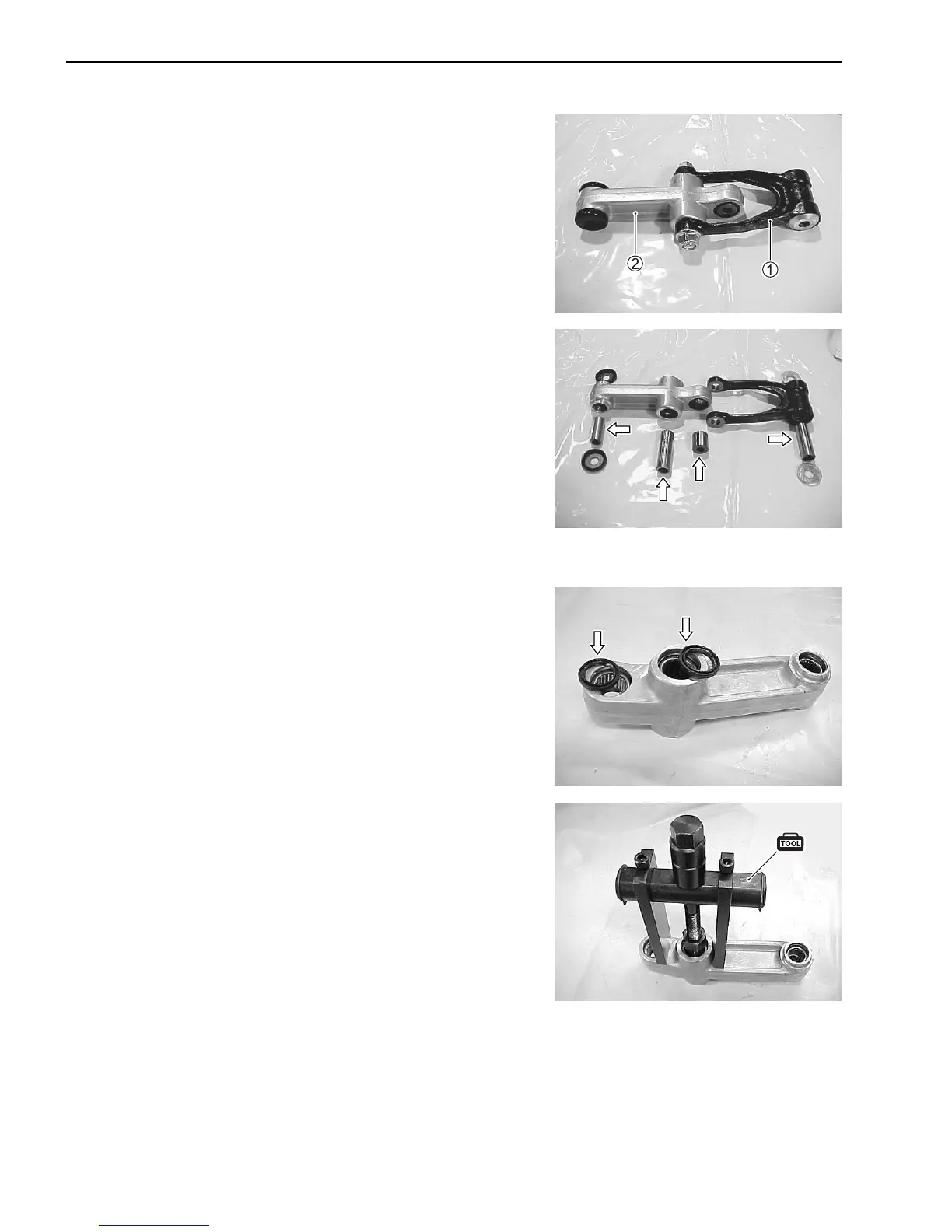 • Remove the cushion rod 1 from the cushion lever 2.