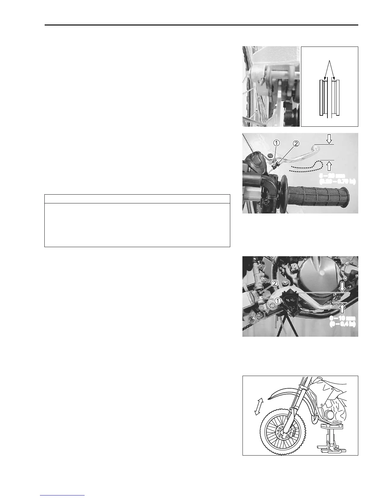 Brake lever play: 5 – 20 mm (0.20 – 0.79 in)