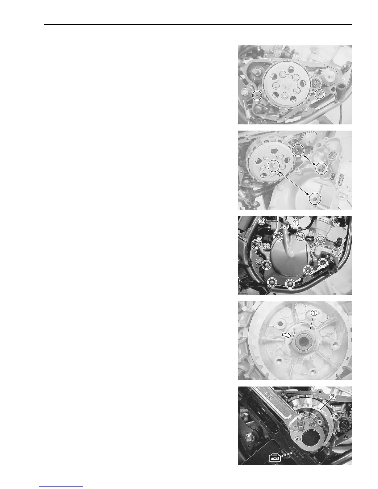 • Install the clutch release arm 1.