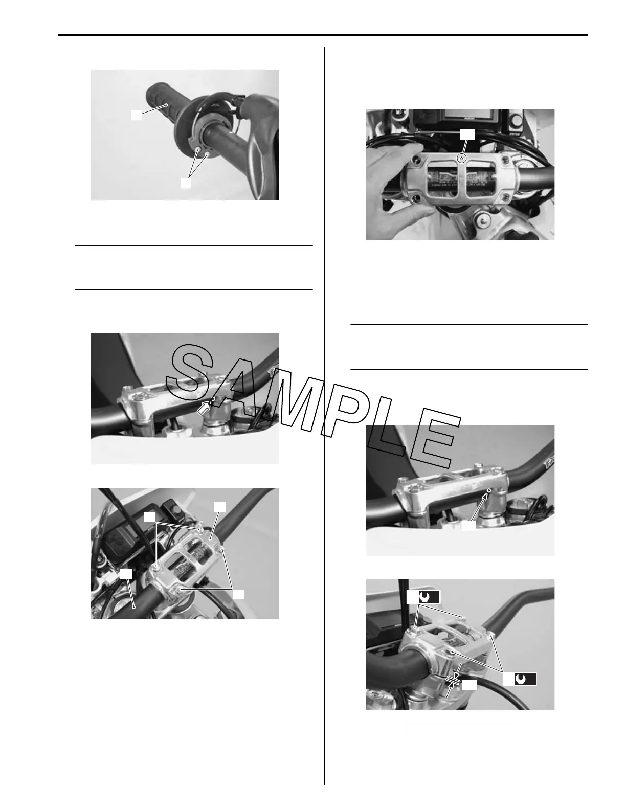 8) Remove the handlebar clamp bolts (10).