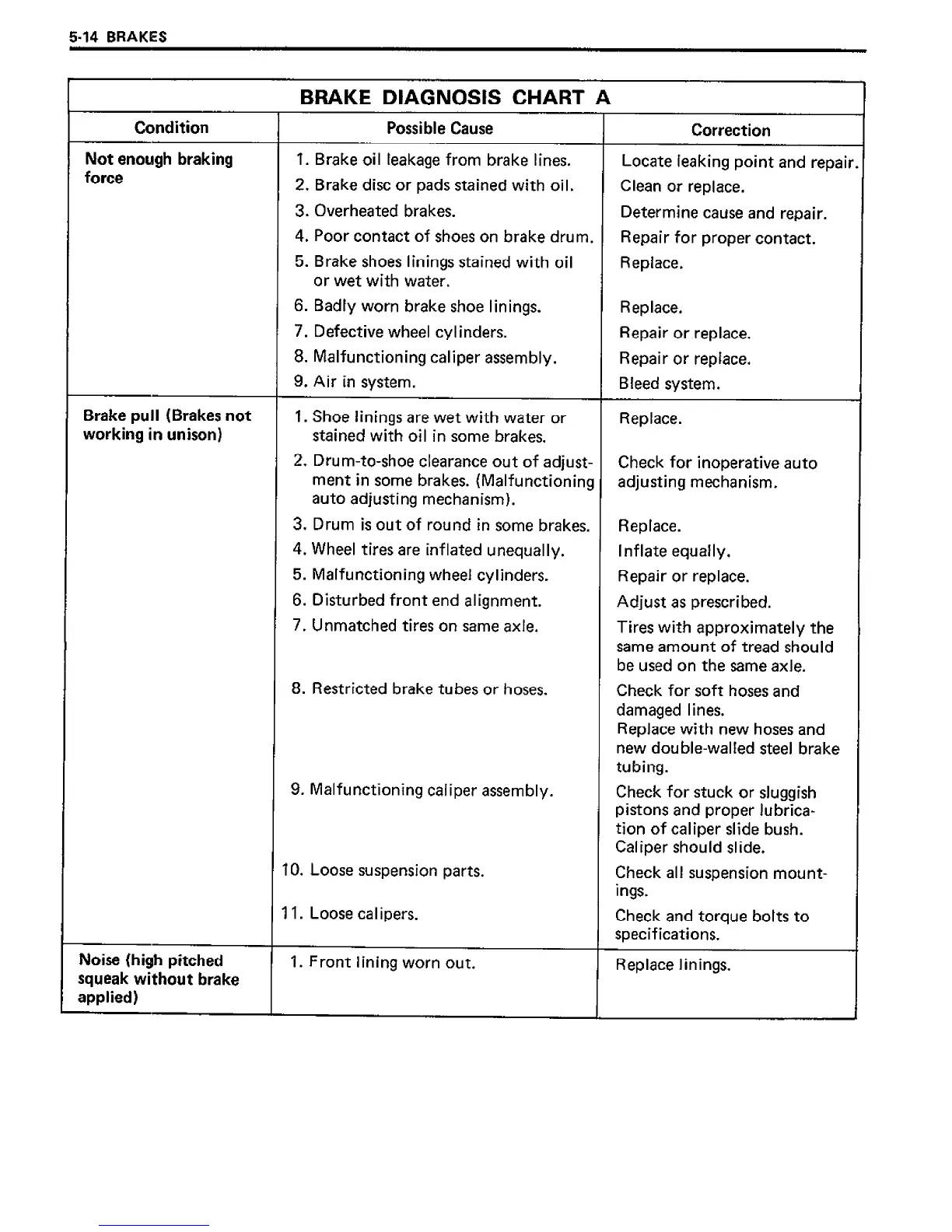 Suzuki SF413 - Brake Diagnosis Chart