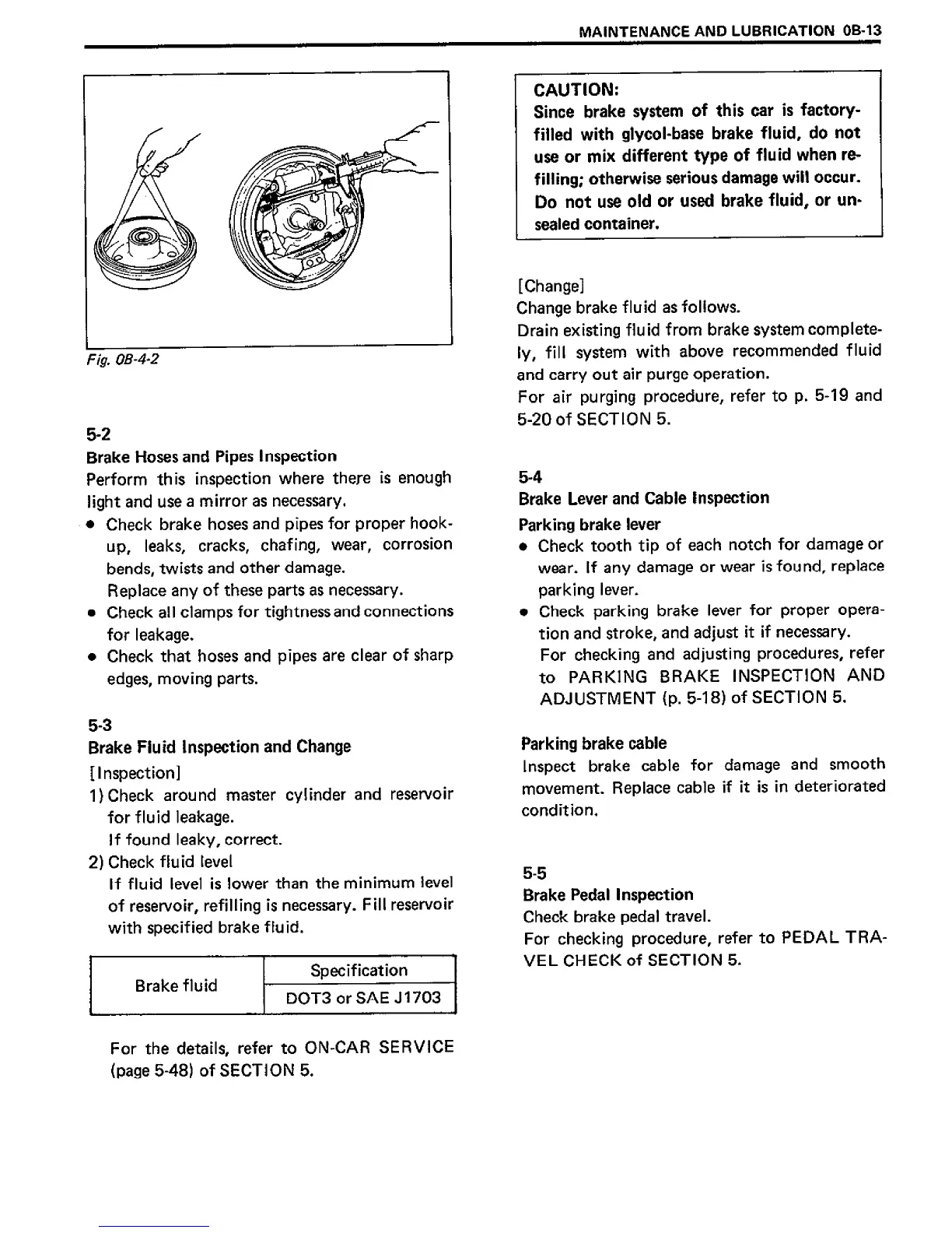 Suzuki SF413 - Brake Hoses and Pipes Inspection; Brake Fluid Inspection and Change; Brake Lever and Cable Inspection; Brake Pedal Inspection