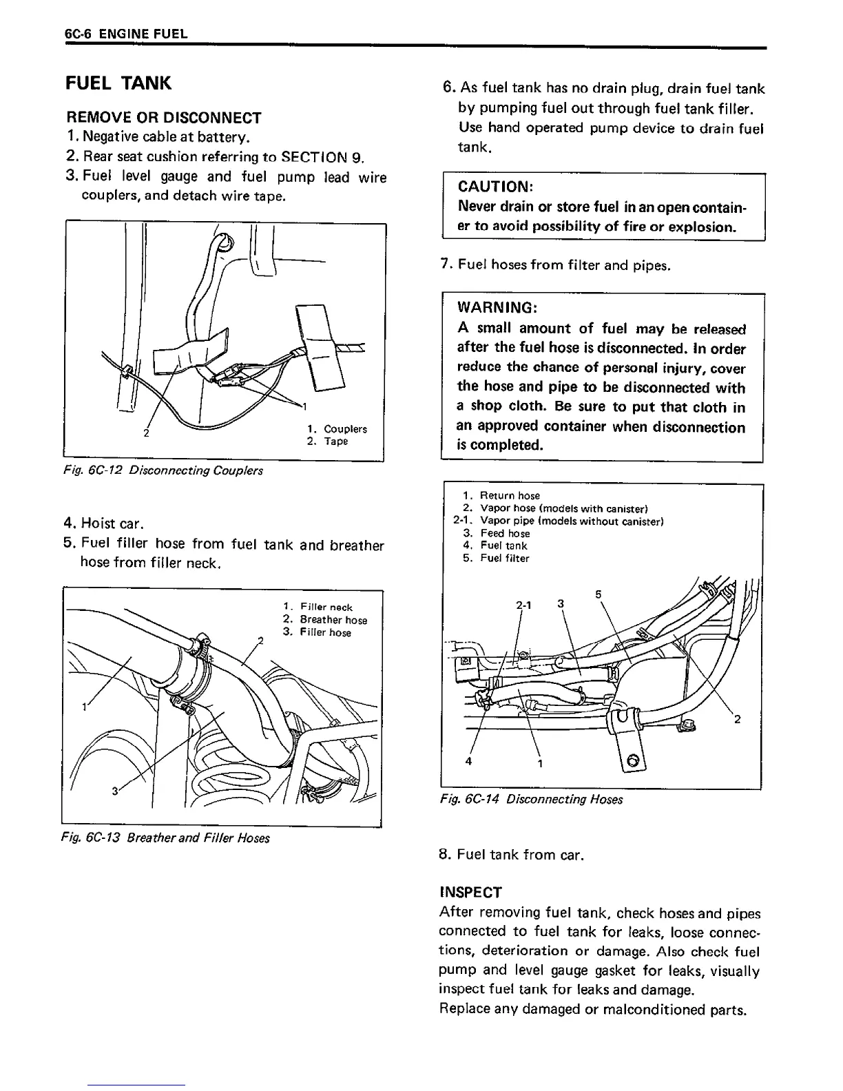 Suzuki SF413 - Fuel Tank Remove or Disconnect; Disconnecting Couplers; Breather and Filler Hoses; Disconnecting Hoses