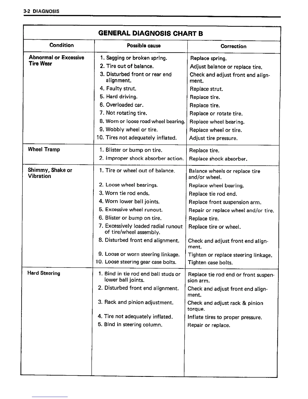 Suzuki SF413 - Steering, Suspension, Wheel and Tires: General Diagnosis