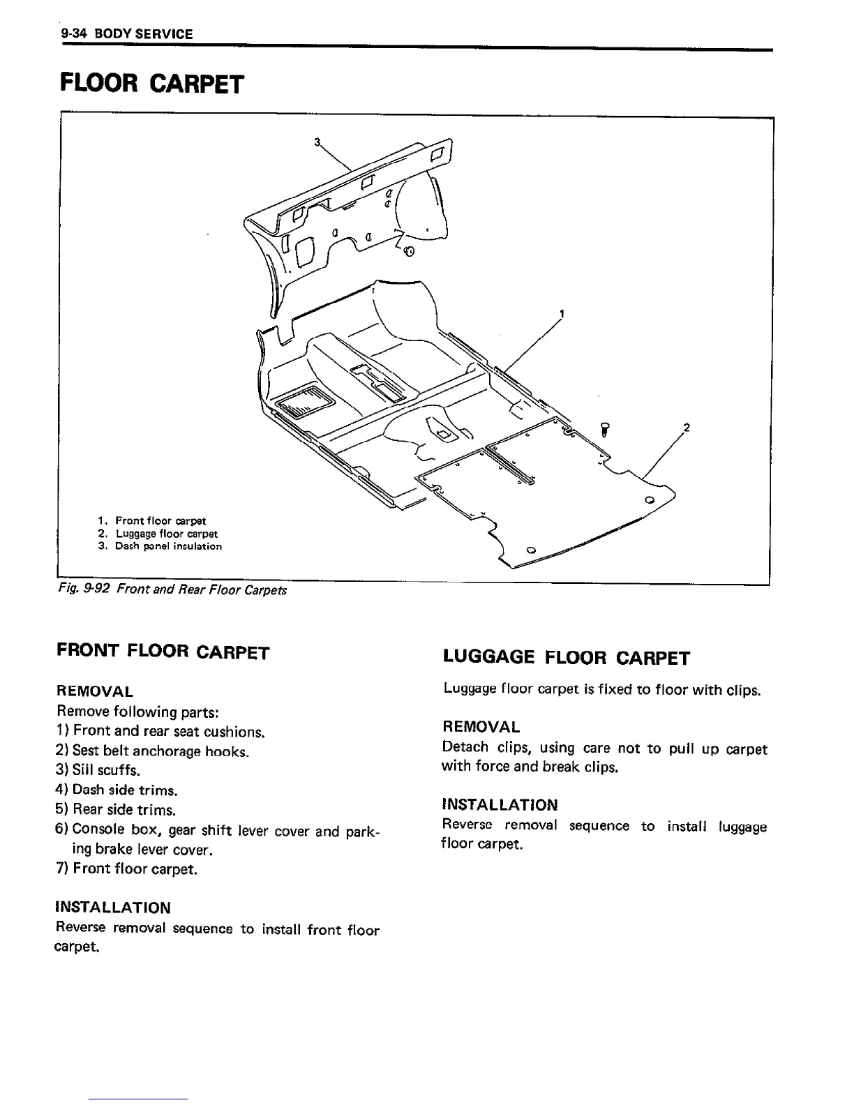 Suzuki SF413 - Front Floor Carpet Removal and Installation; Luggage Floor Carpet Removal and Installation