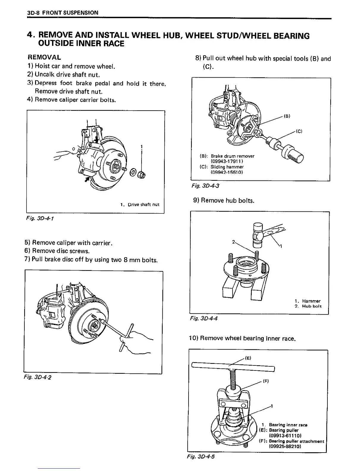 Suzuki SF413 - Remove and Install Wheel Hub, Wheel Stud;Wheel Bearing Outside Inner Race