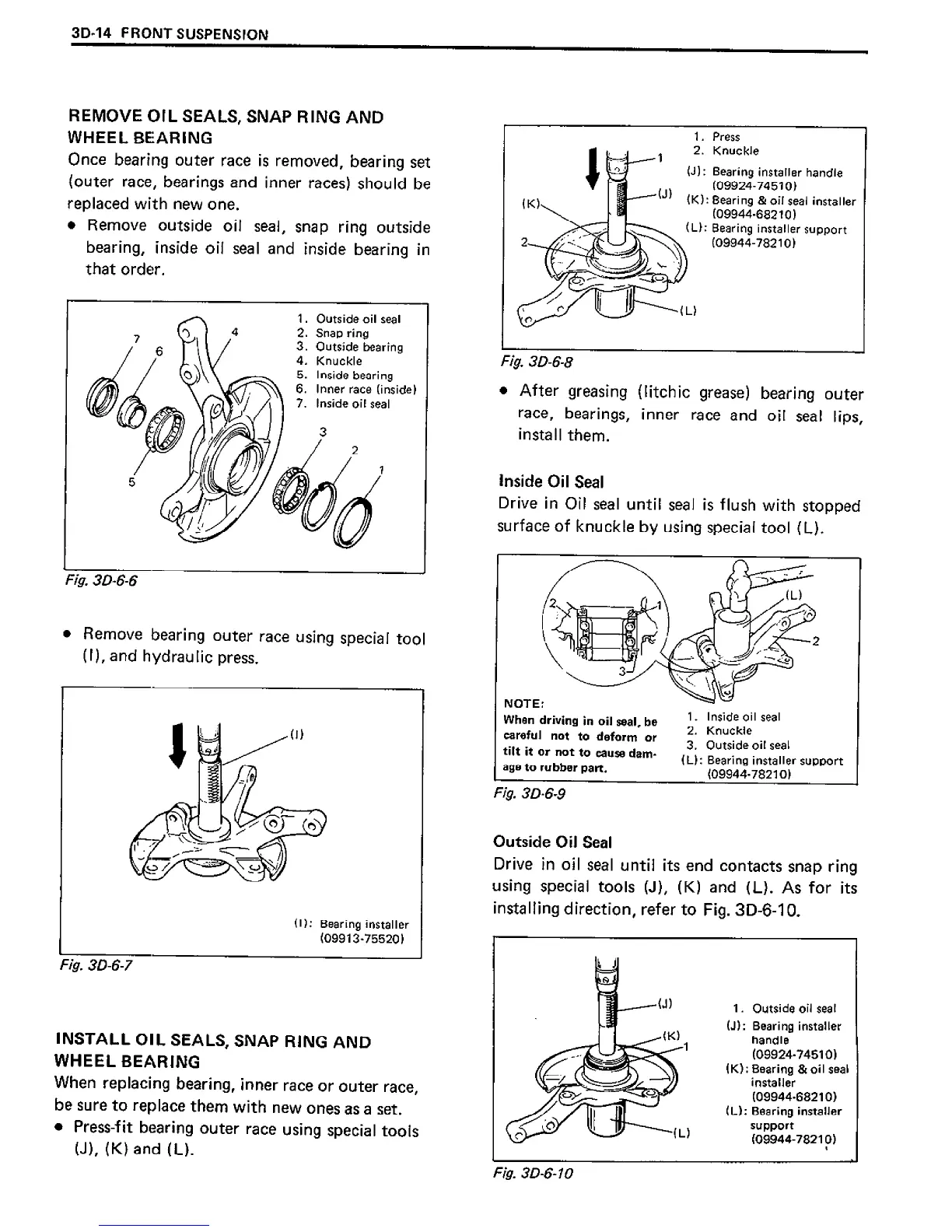 Suzuki SF413 - Remove Oil Seals, Snap Ring and Wheel Bearing; Install Oil Seals, Snap Ring and Wheel Bearing