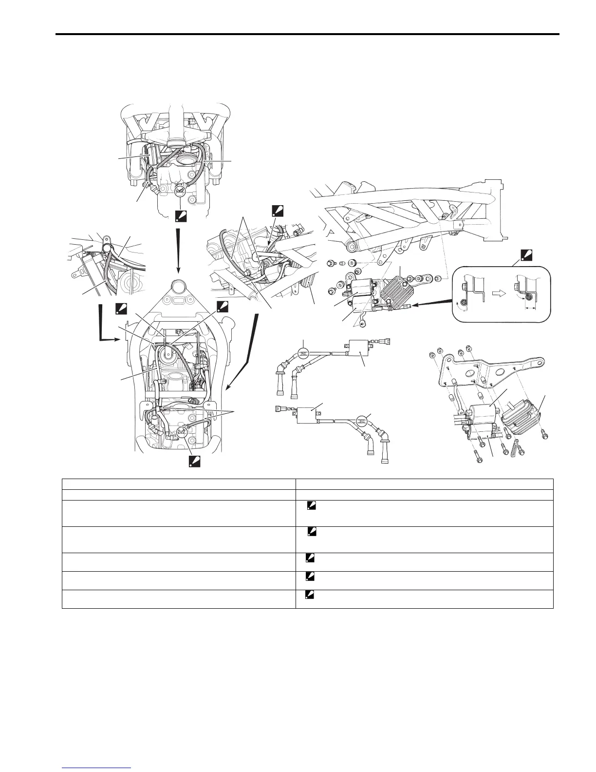 5. High-tension cord #2 “A”: Pass the high-tension cord above the horn and reservoir tank inlet hose.