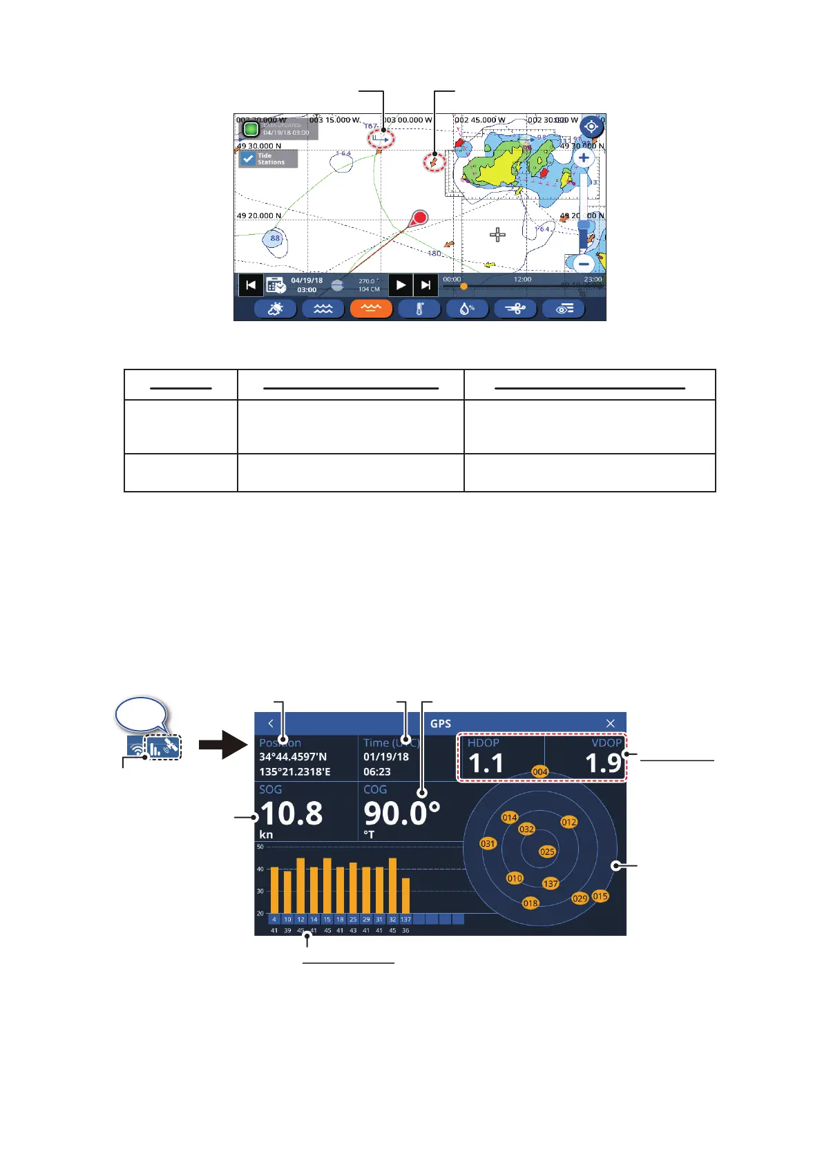 DOP (Dilution Of Precision) values are indicated in both horizontal (HDOP) and verti-