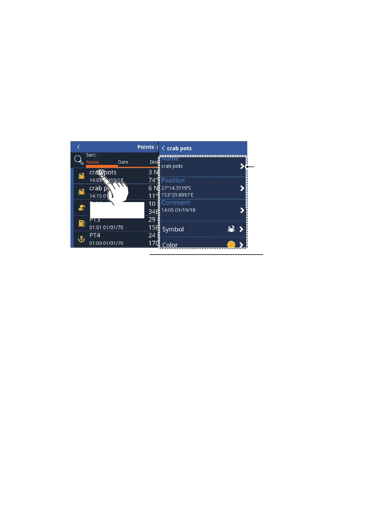 2. Tap the point you want to edit. The information fields for the point appear on the