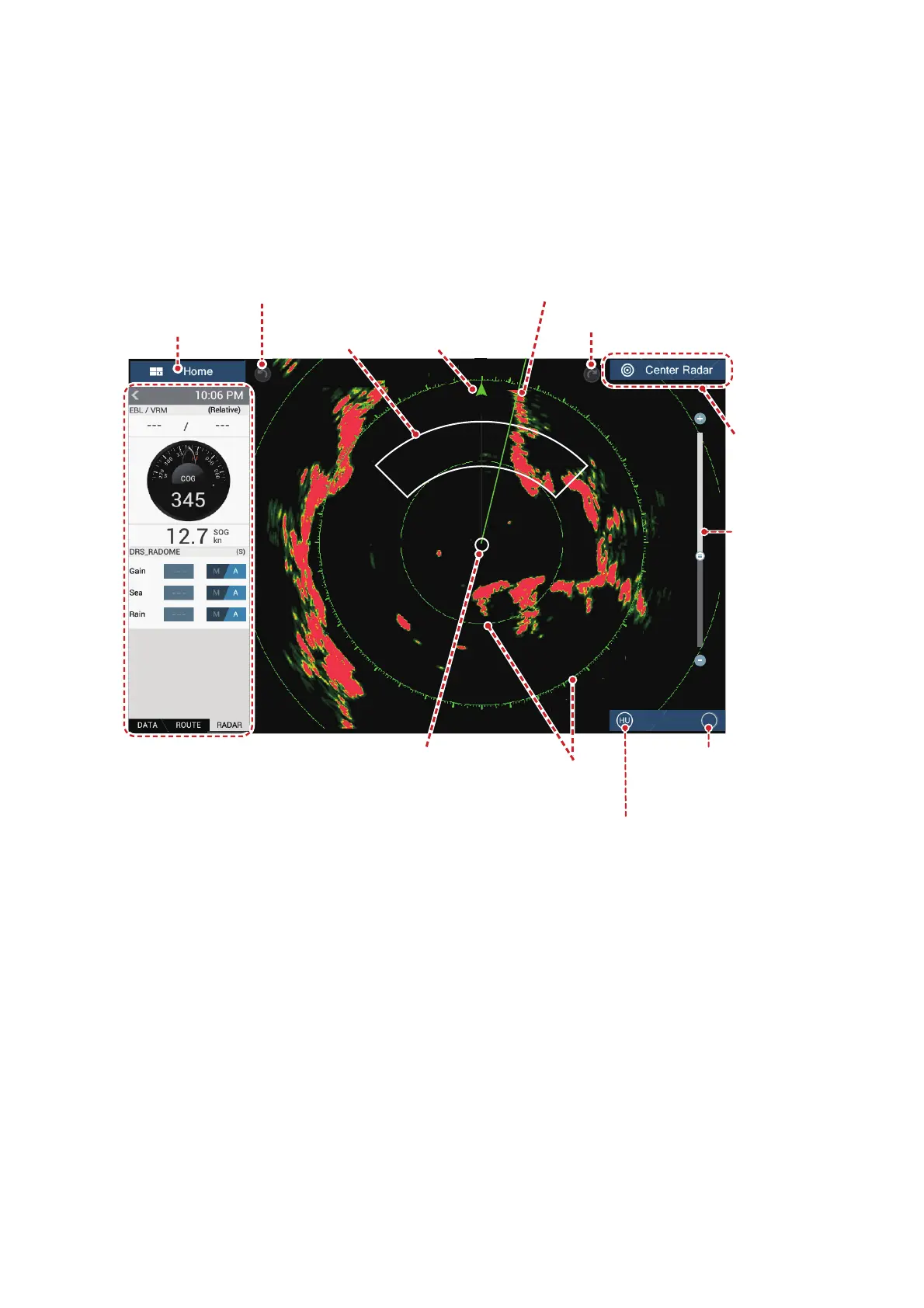 radar detects the position and movement of objects. Objects are shown on the radar