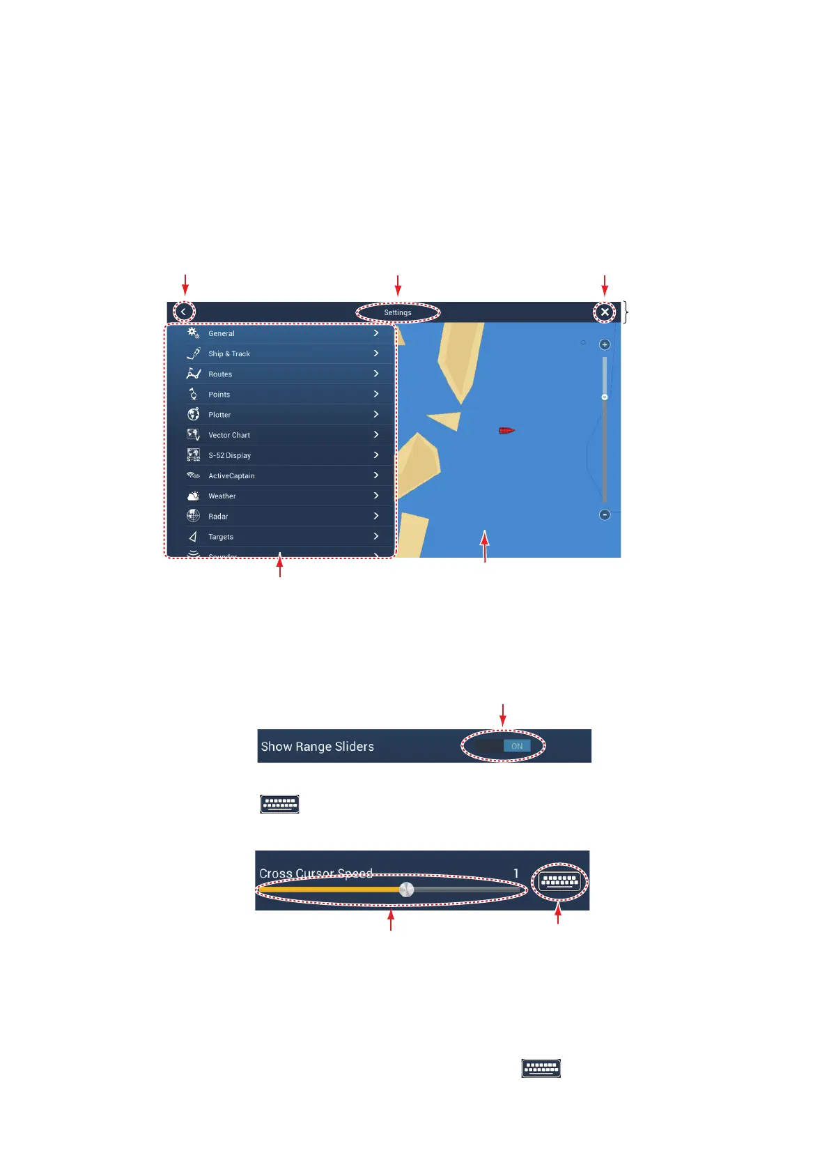 • Slider bar, keyboard: Set level by dragging the slider, or tapping the keyboard