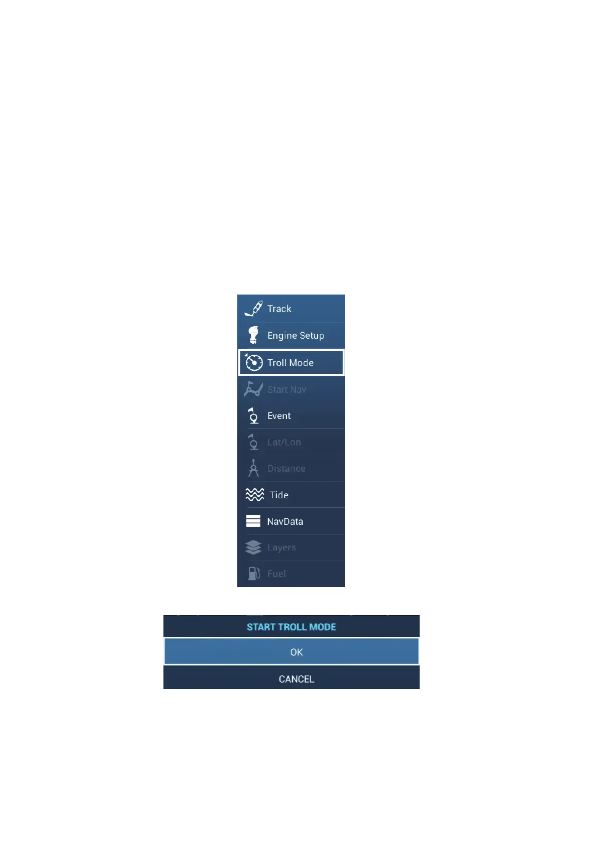 2. Tap [Troll Mode] to show the following menu.