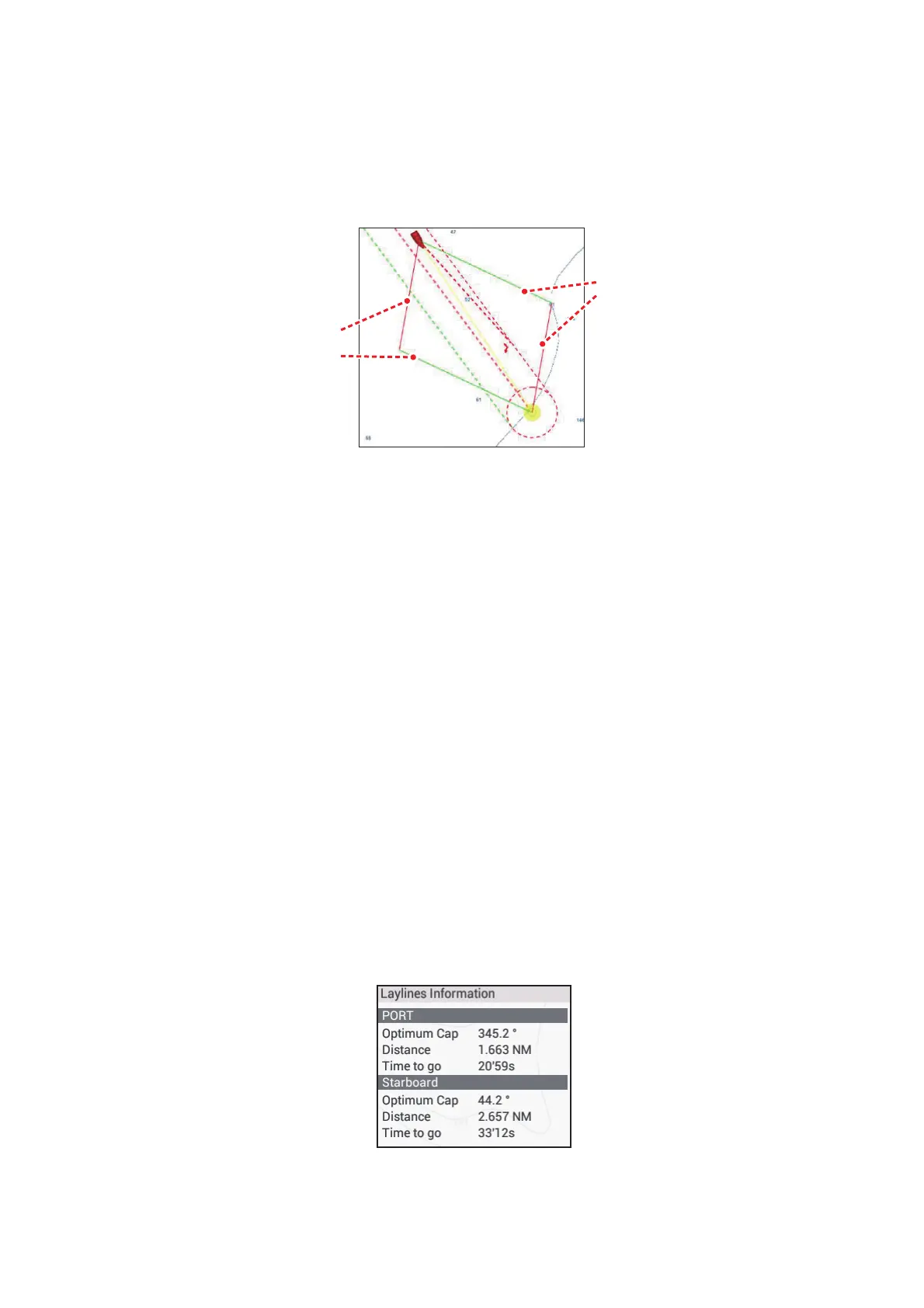 3. Tap [Layline Information]. Data for port-side and starboard-side appears in the
