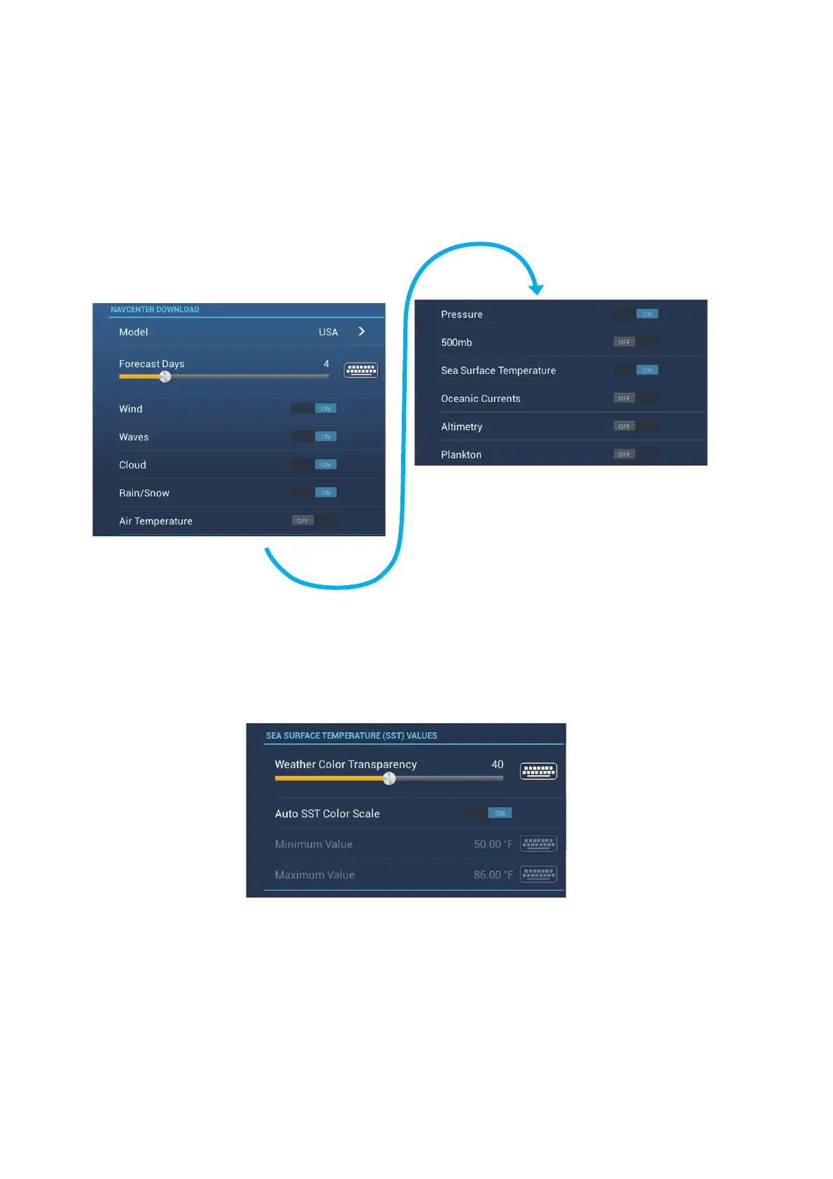[Auto SST Color Scale]: Activate this feature to adjust the SST color scale auto-