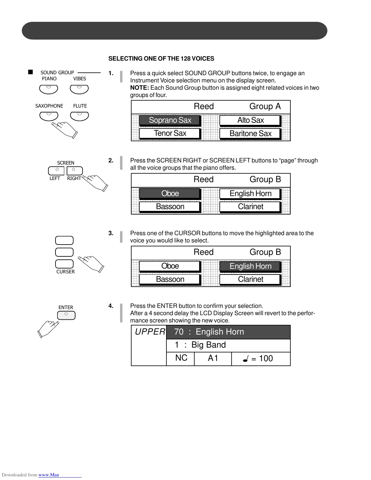 SELECTING ONE OF THE 128 VOICES