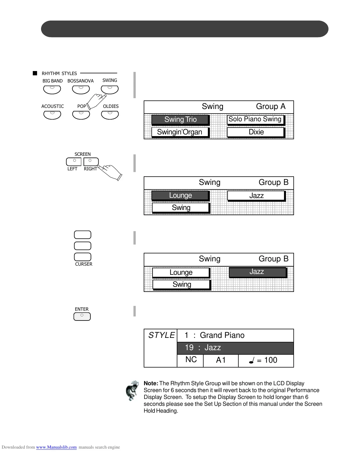 Note: The Rhythm Style Group will be shown on the LCD Display
