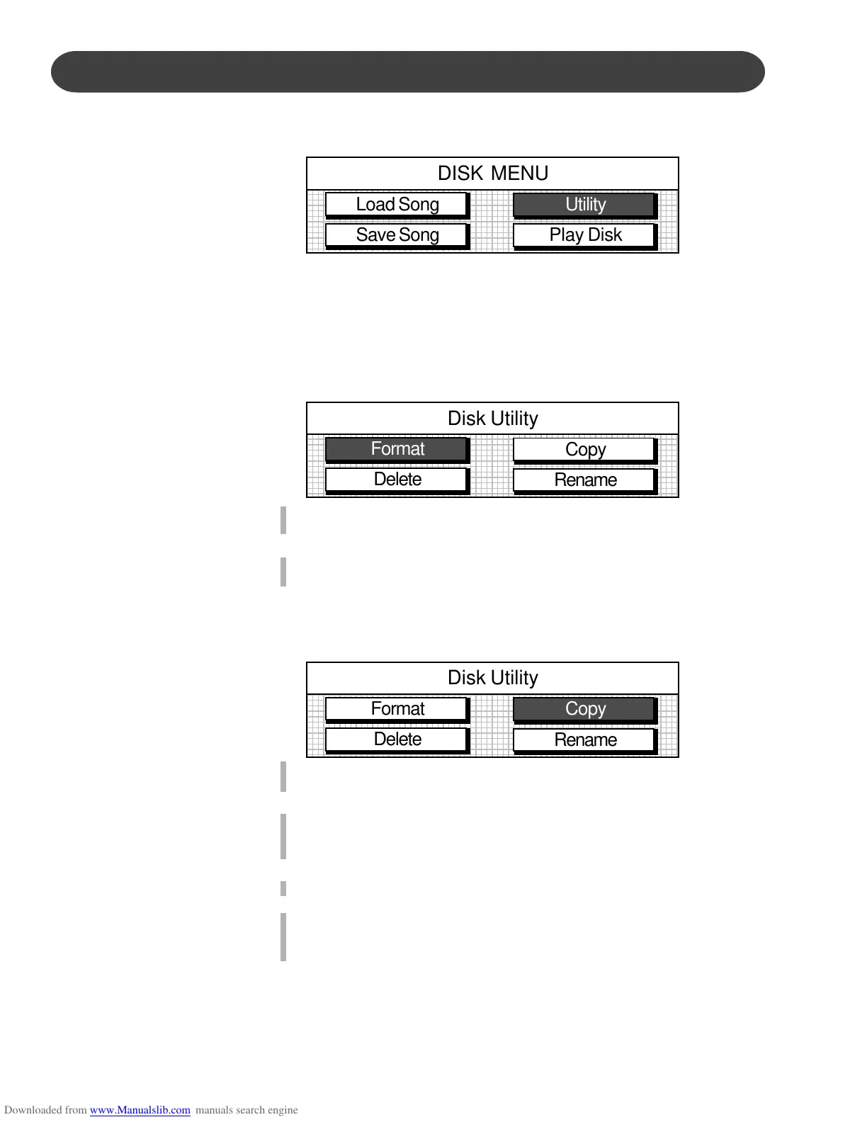2. Select the Copy menu, the menu will show the available songs on the