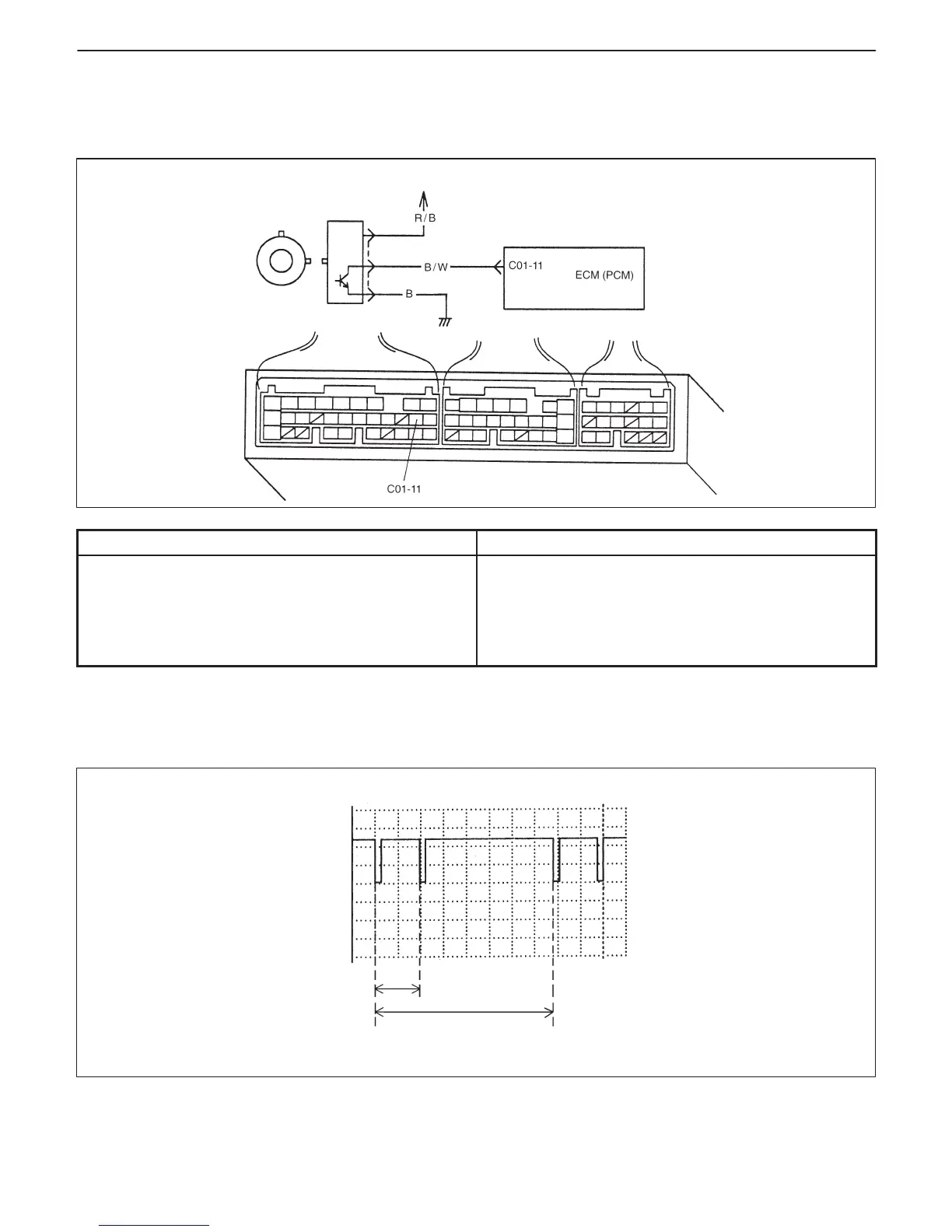 Connect oscilloscope between terminals C01-11 of ECM (PCM) connector connected to ECM (PCM) and body