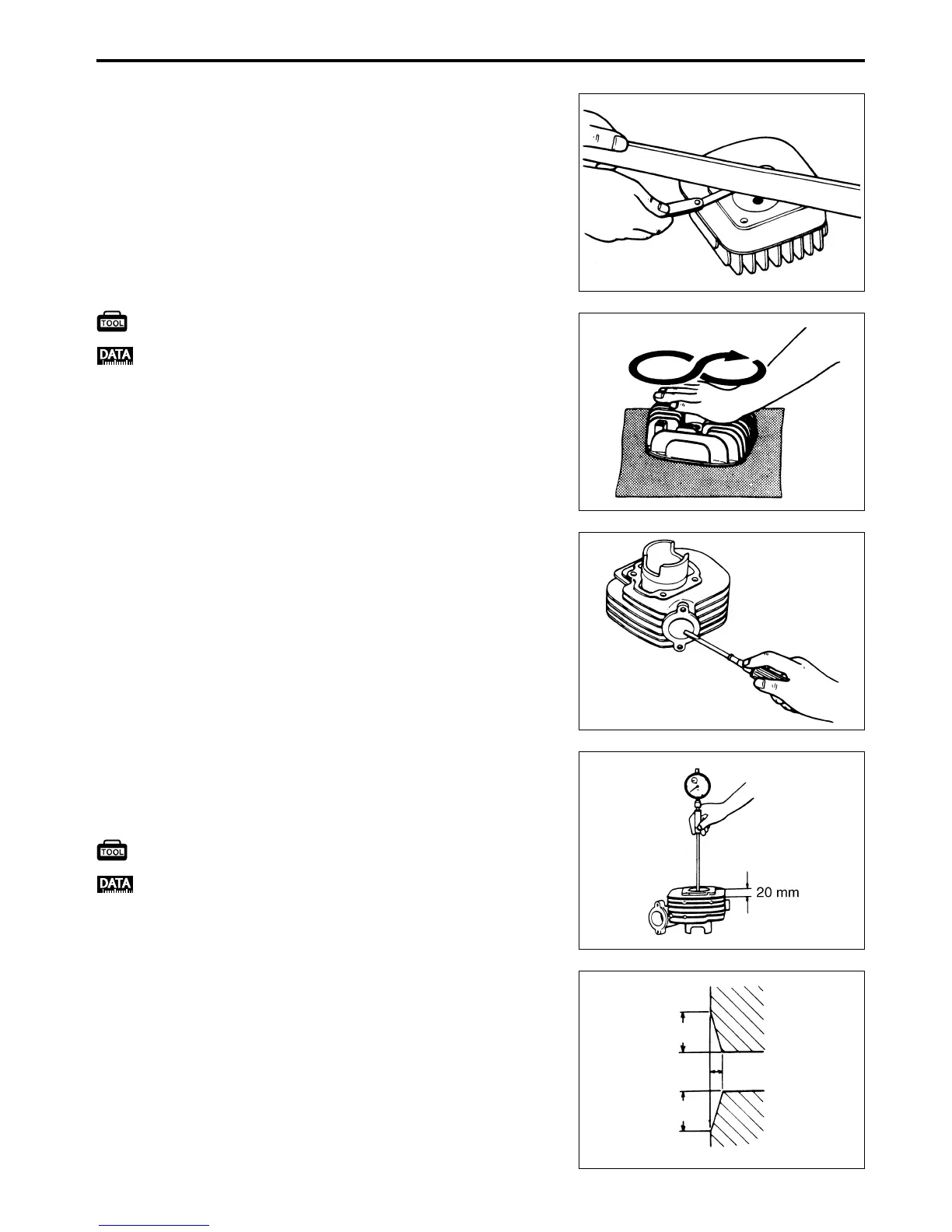 Measure the cylinder bore with the cylinder gauge at 20 mm