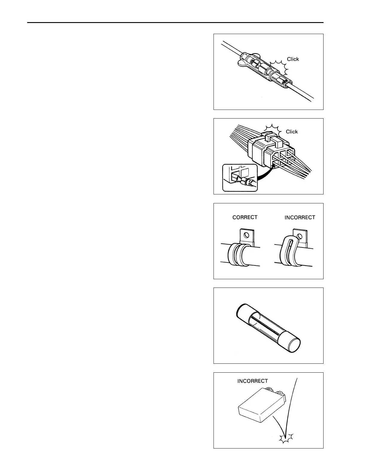 • Do not use any substitute for the fuse (e.g., wire).