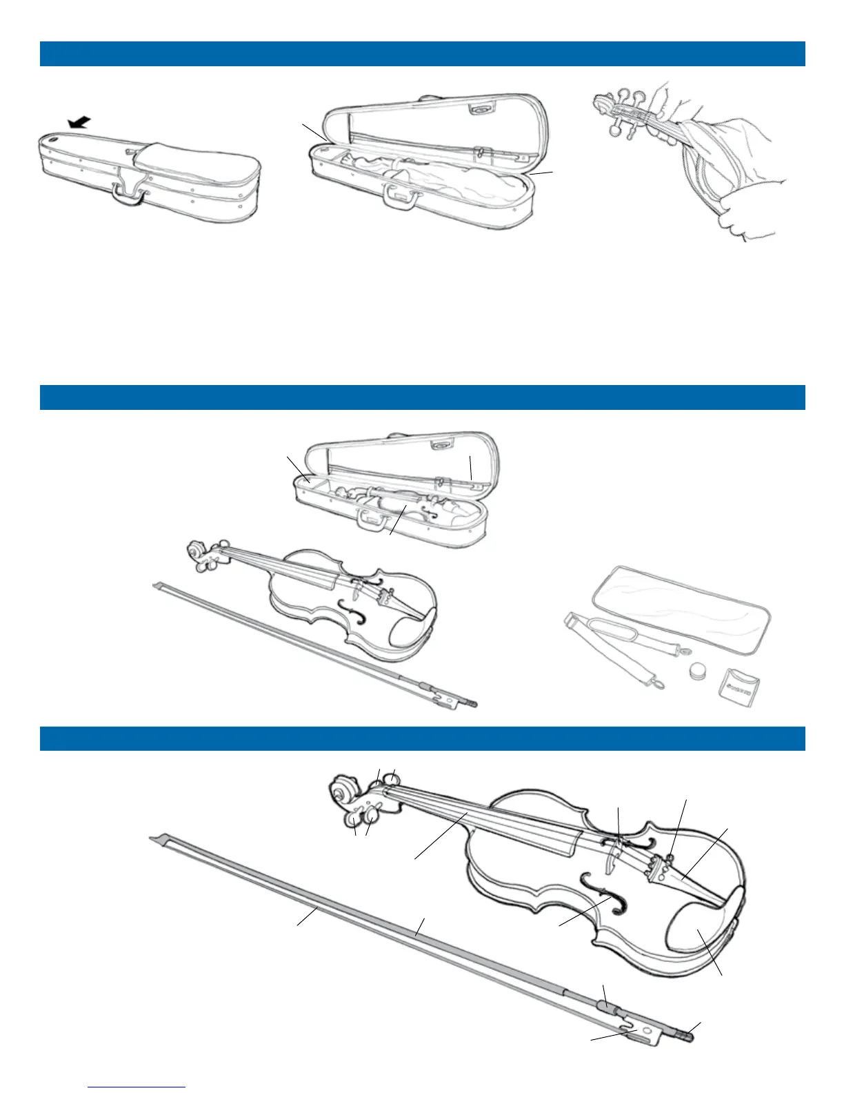 • Put a small amount of Rosin on the Bow Hairs before playing. Hold