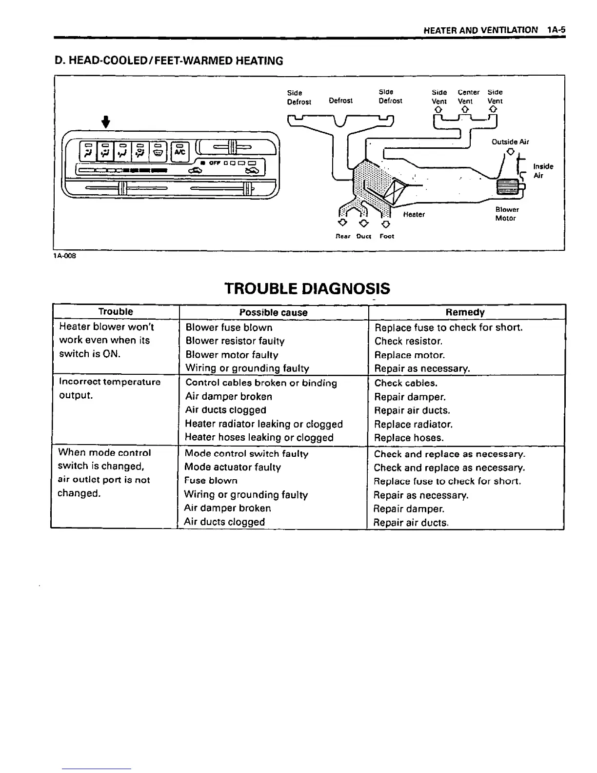 Suzuki VITARA - D. Head-Cooled;Feet-Warmed Heating; Trouble Diagnosis (Heater and Ventilation)