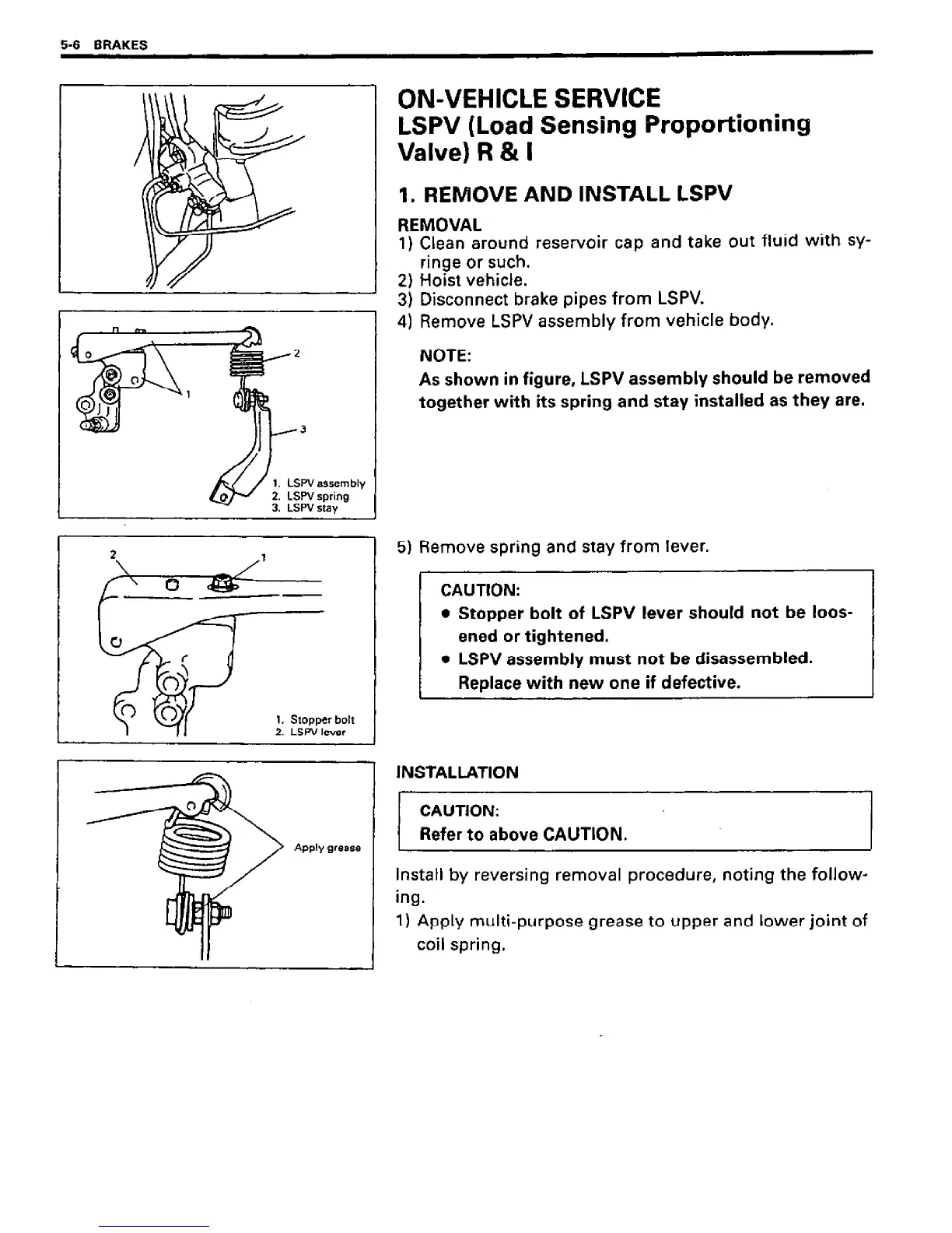 Suzuki VITARA - On-Vehicle Service LSPV (Load Sensing Proportioning Valve( R & I); Remove and Install LSPV