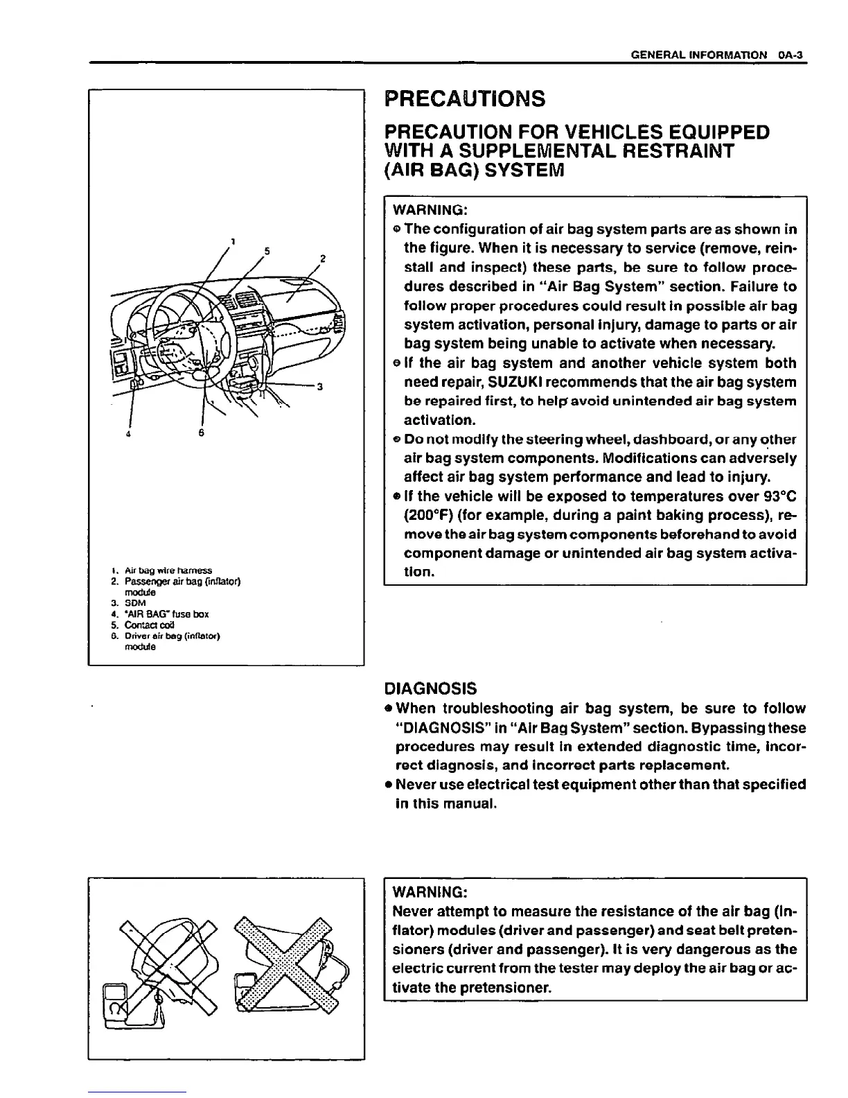 Suzuki VITARA - Precautions for Vehicles Equipped with Supplemental Restraint (Air Bag) System