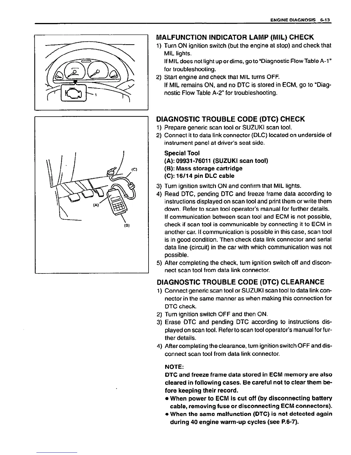 Suzuki VITARA - Malfunction Indicator Lamp (MIL) Check; Diagnostic Trouble Code (DTC) Check; Diagnostic Trouble Code (DTC) Clearance