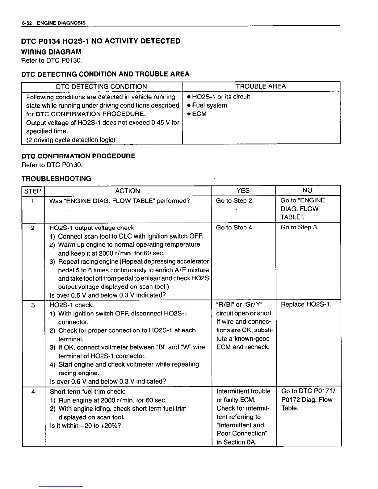 Suzuki VITARA - DTC P0134 HO2 S-1 no Activity Detected