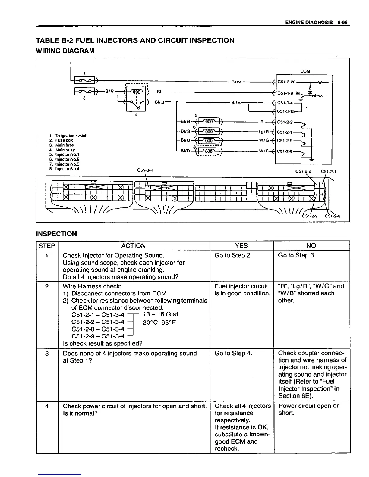Suzuki VITARA - Table B-2 Fuel Injectors and Circuit Inspection