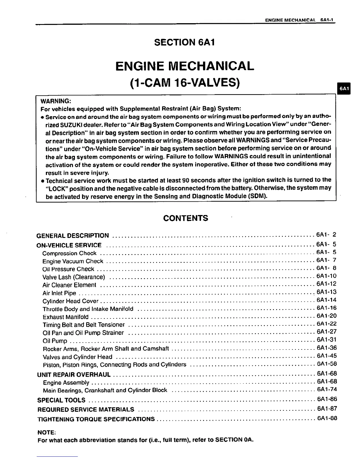 Suzuki VITARA - Engine Mechanical (1-Cam 16-Valves)