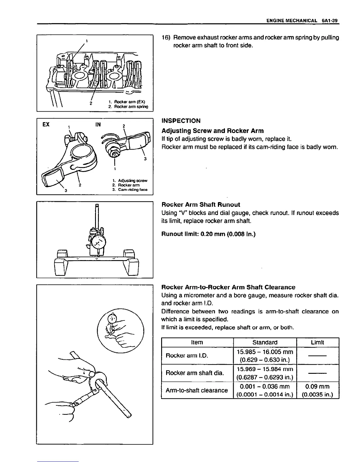 Suzuki VITARA - Rocker Arms, Rocker Arm Shaft and Camshaft Inspection; Adjusting Screw and Rocker Arm Inspection; Rocker Arm Shaft Runout Check; Rocker Arm-To-Rocker Arm Shaft Clearance