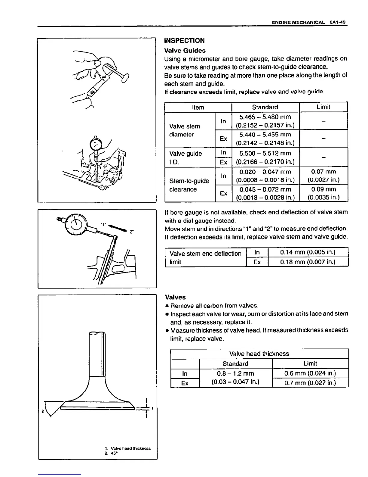 Suzuki VITARA - Valves and Cylinder Head Inspection; Valve Guides Check; Valves Check