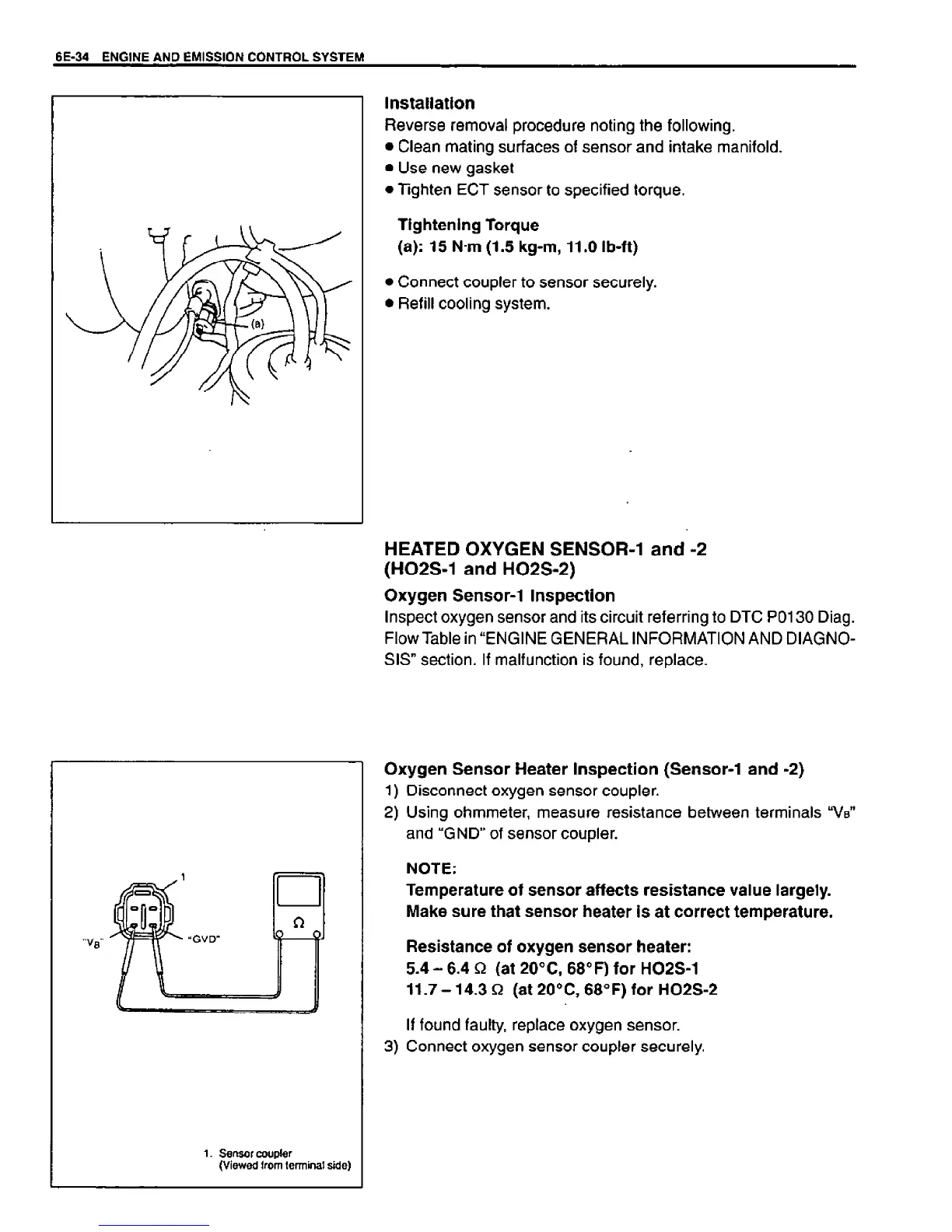 Suzuki VITARA - Engine Coolant Temperature Sensor (ECT Sensor) Installation; Heated Oxygen Sensor-1 and -2 (HO2 S-1 and HO2 S-2) Inspection