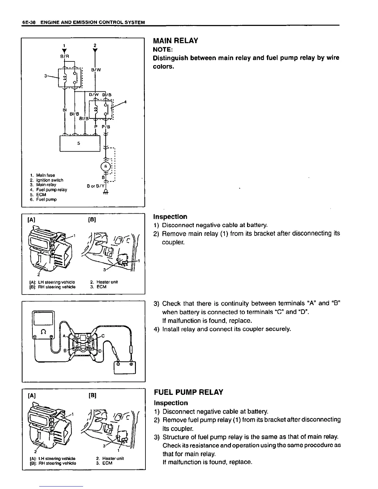 Suzuki VITARA - Main Relay Inspection; Fuel Pump Relay Inspection